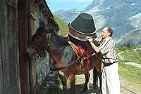 Berghotel Obersteinberg - eine 60 Jahre alte HUWA wird von Herrn Hunziker, nach beschwerlichem Aufstieg mit dem Maulesel, persönlich repariert.